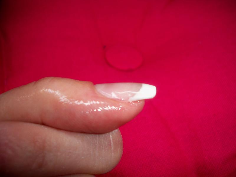 pour une premiere pose c'est plutot pas mal ! la regularité de la french ca viendra ! tu aurais peu etre du la descendre un peu plus pour ne pas laisser apparaitre ton ongle naturel trop tot a la repousse.