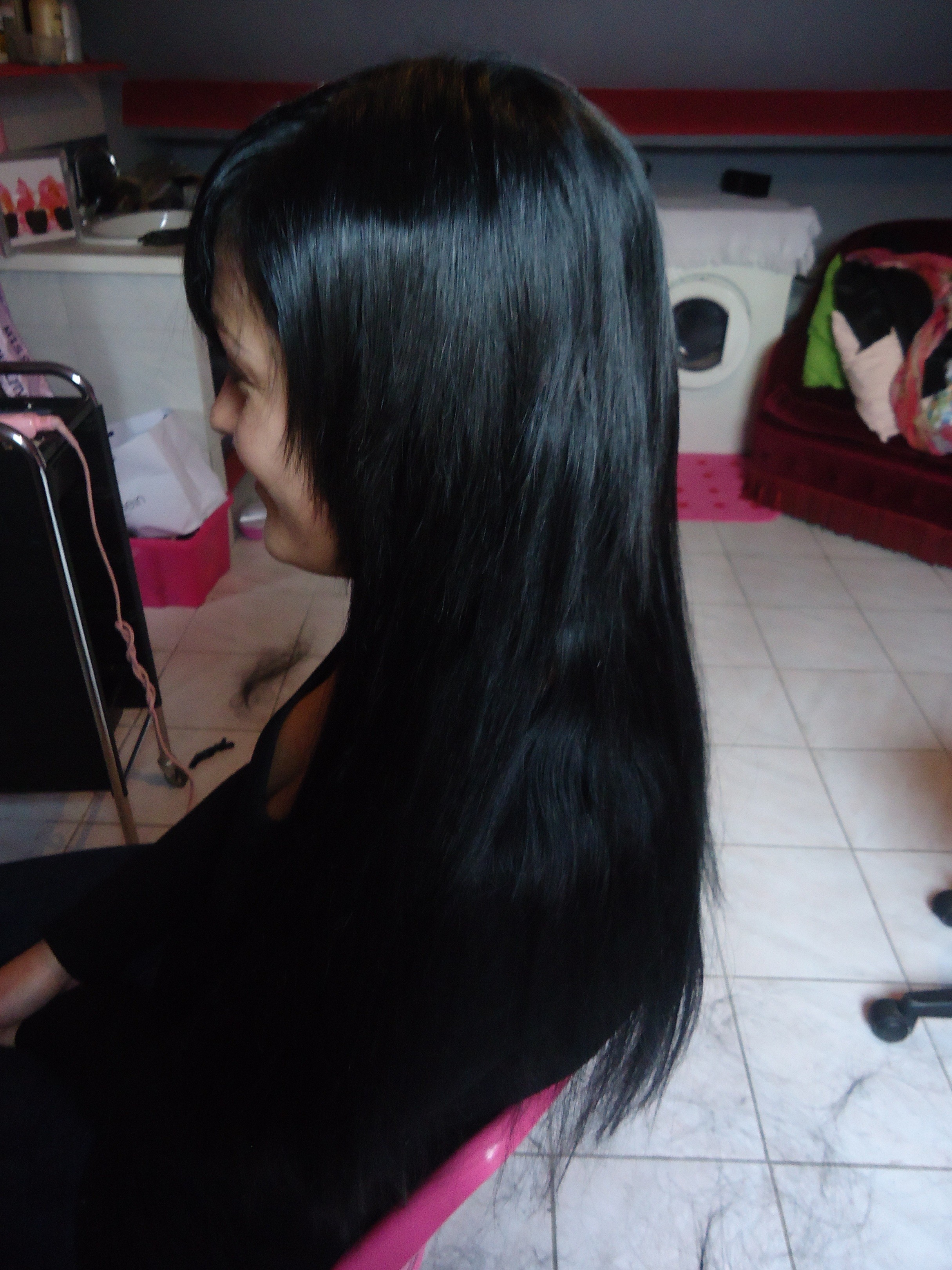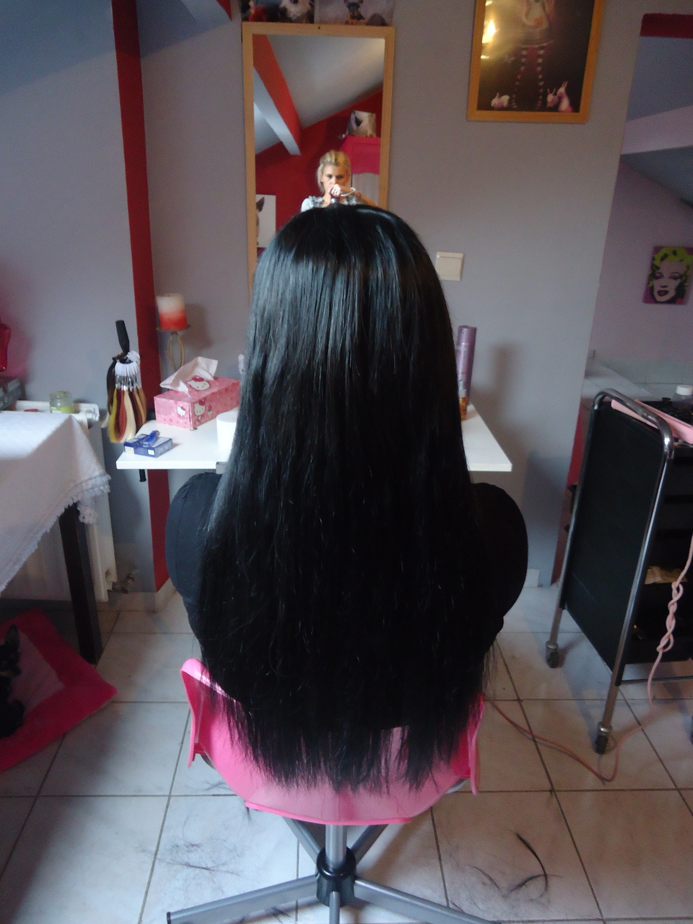 pose de xtensions 55 cm noire et une coupe voila