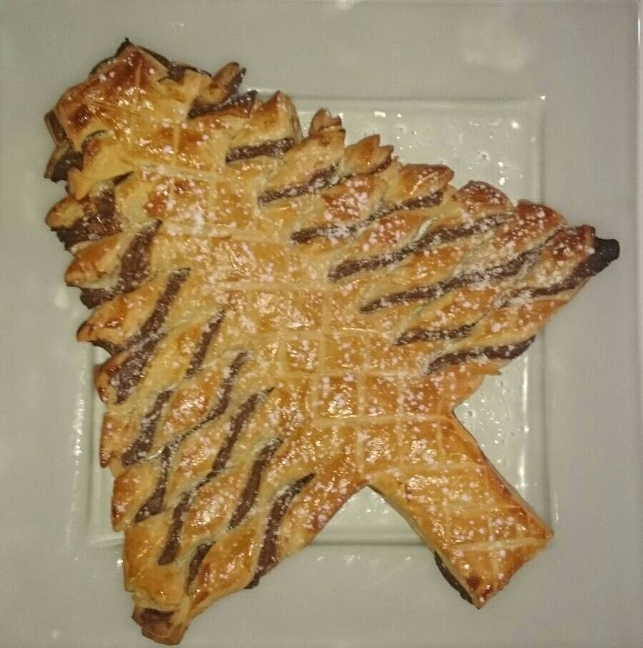 Pour la recette du sapin c'est très simple: 2 pâtes feuilletées avec du Nutella entre (on peut mettre ce qu'on veut dedans en fait). Tu coupes en forme de sapin, tu traces des bandes, tu les tournes toutes dans le même sens, du jaune d'oeuf et au four !