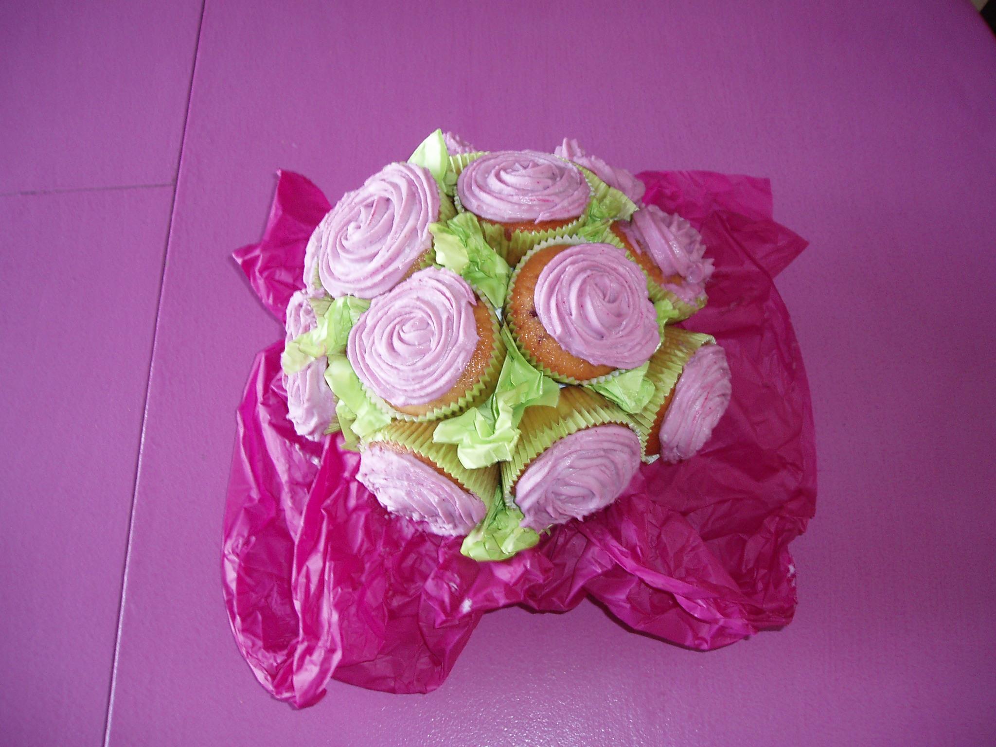 Ce matin j'ai tenter de faire un bouquet de cupcakes...