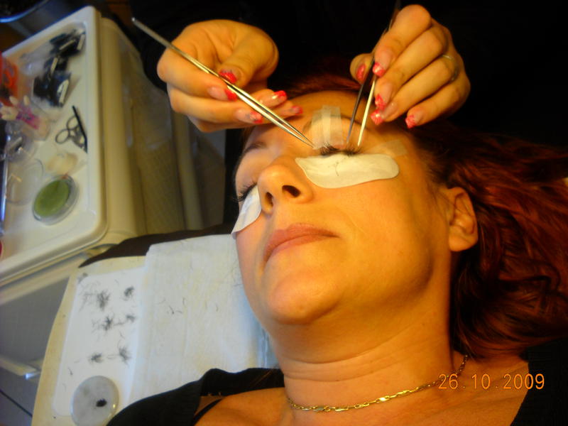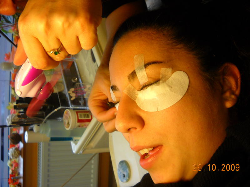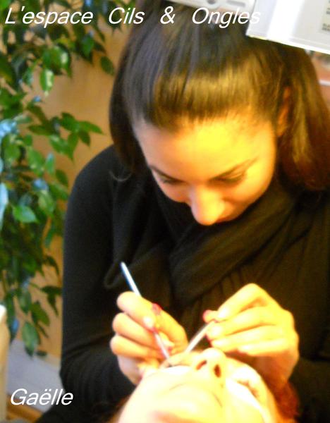 et vu que Gaëlle n'a jamais porter de cil ( rhooo la vierge du cil hihi) bin sabine lui a fait l'honneur de lui faire la pose...pour moi la journée a passer trop trop vite mais avec du recul je peux vous dire que ce sont des techniciennes d'extension de cil exceptionnelle...bravo les filles et grand merci à vous deux pour cette journée ou nous avons eu réelement un moment de partage dans la convivialité et la bonne humeur :wub: