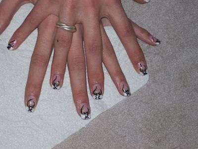 tu l'as fait sur toi? alors mon avis de debutante lol pour moi ce que je vois c'est le bout j'ai l'impression k'il s'ecarte (peut etre affiner la largeur du bord libre pitetre) et apres pour moi toujours, la french trop grande lol!!!