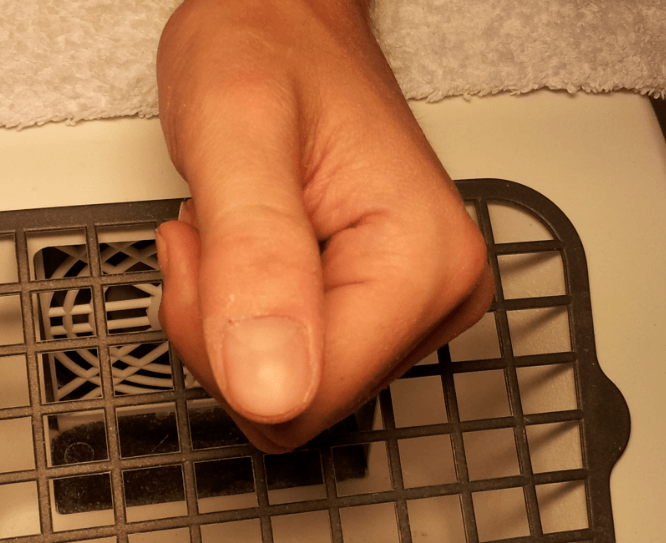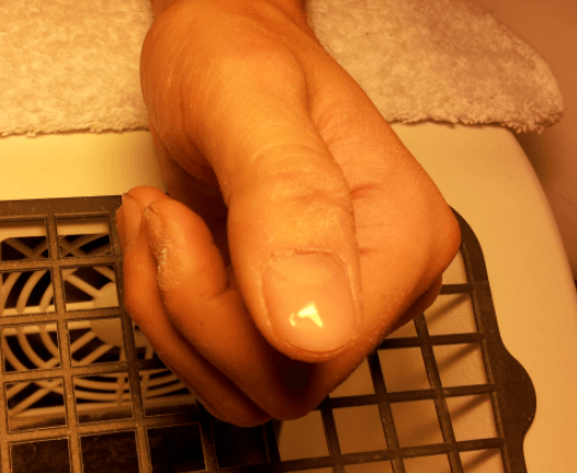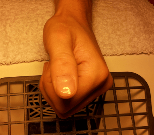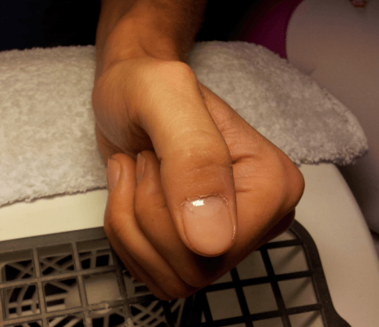 1/ l'ongle naturel, un peu arrosé de désinfectant