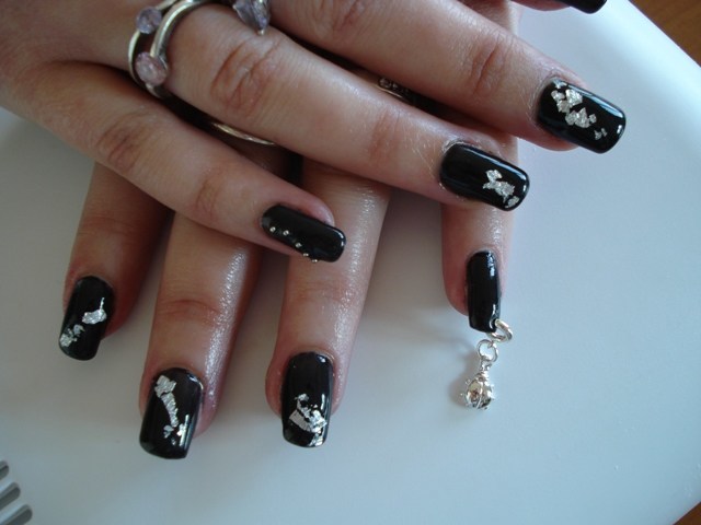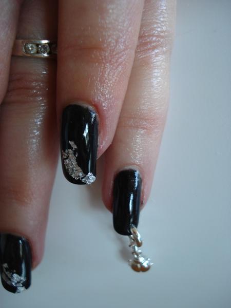 d'habitude je n'aime pas le noir sur tout l'ongle, mais la ca le fait grave, surtout avec les feuilles argent !
