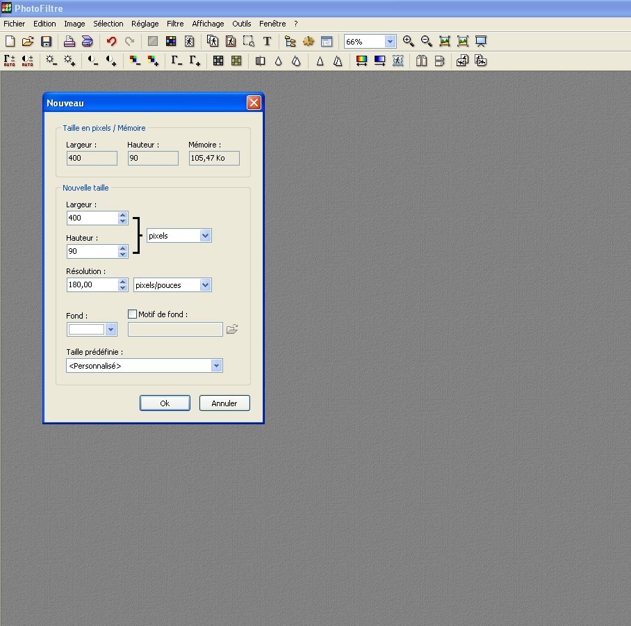 On ouvre photofiltre et on créer un nouveau document.