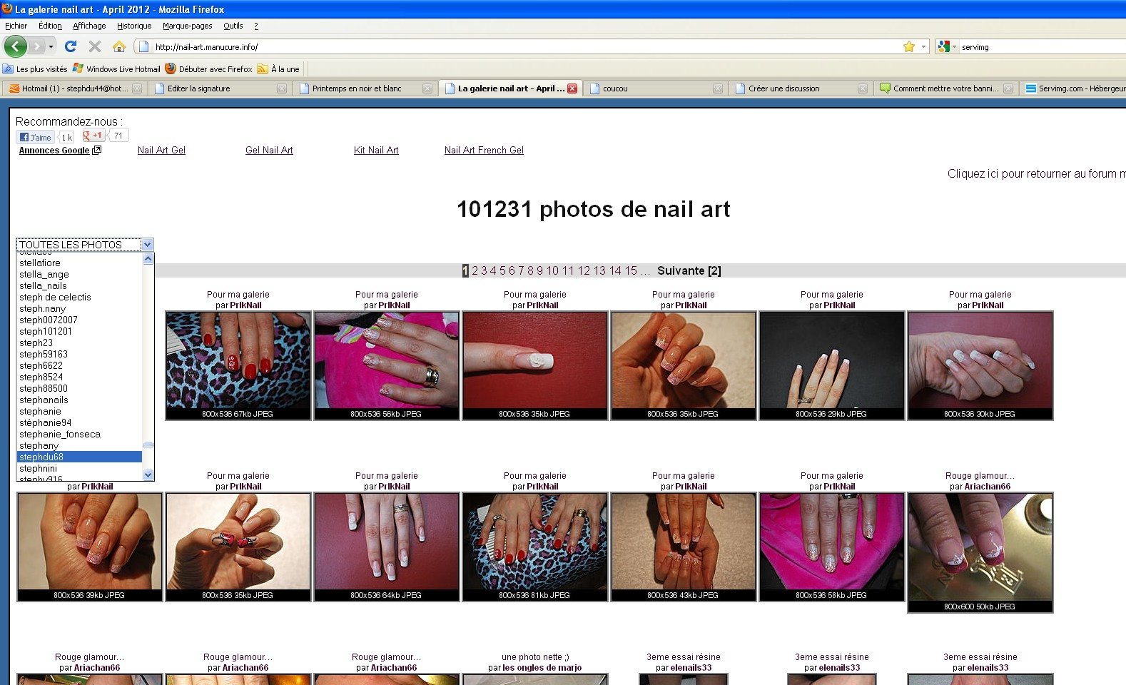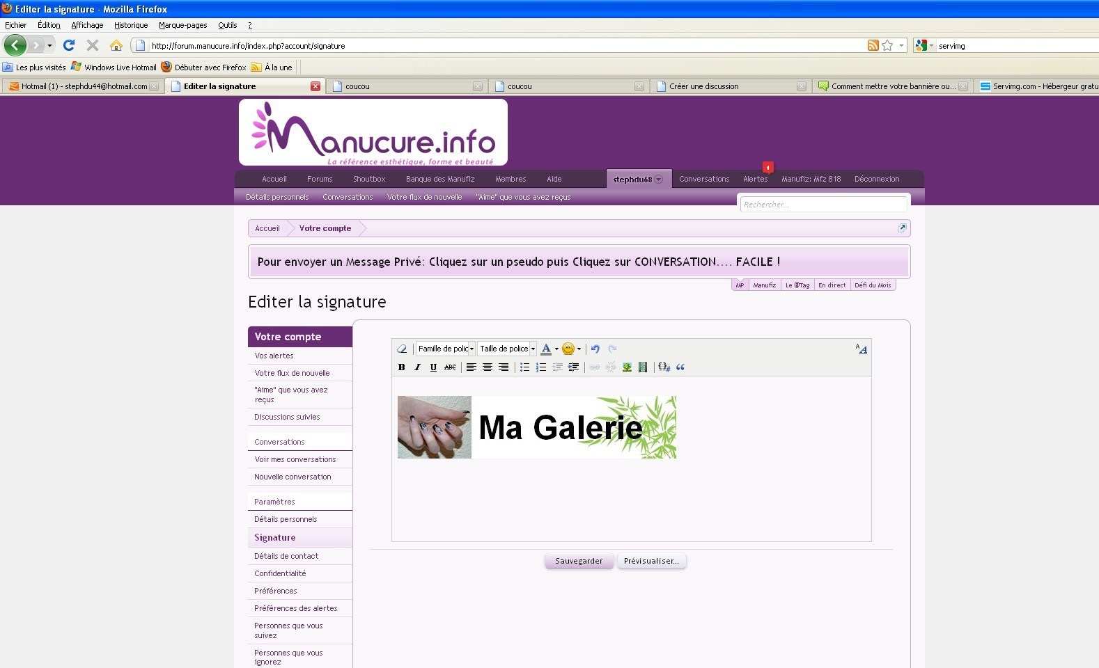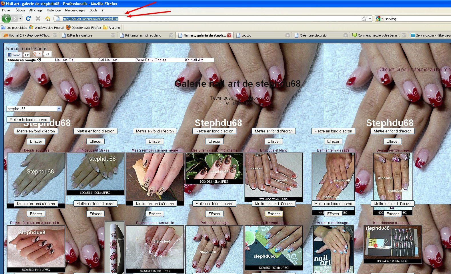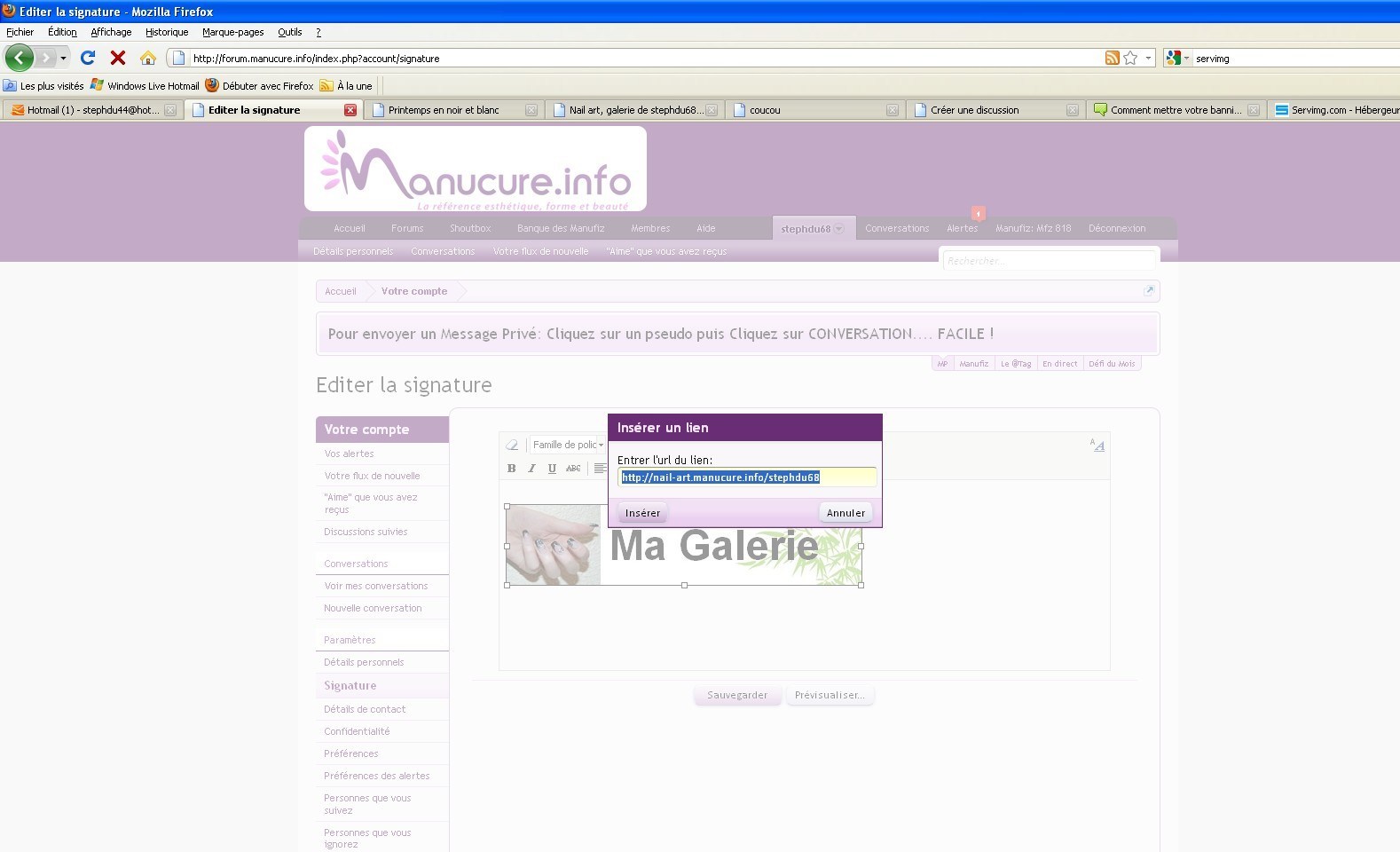 Vous aller chercher le lien de votre galerie http://nail-art.manucure.info/ Cliquer sur votre pseudo (en haut à gauche) (photo16)