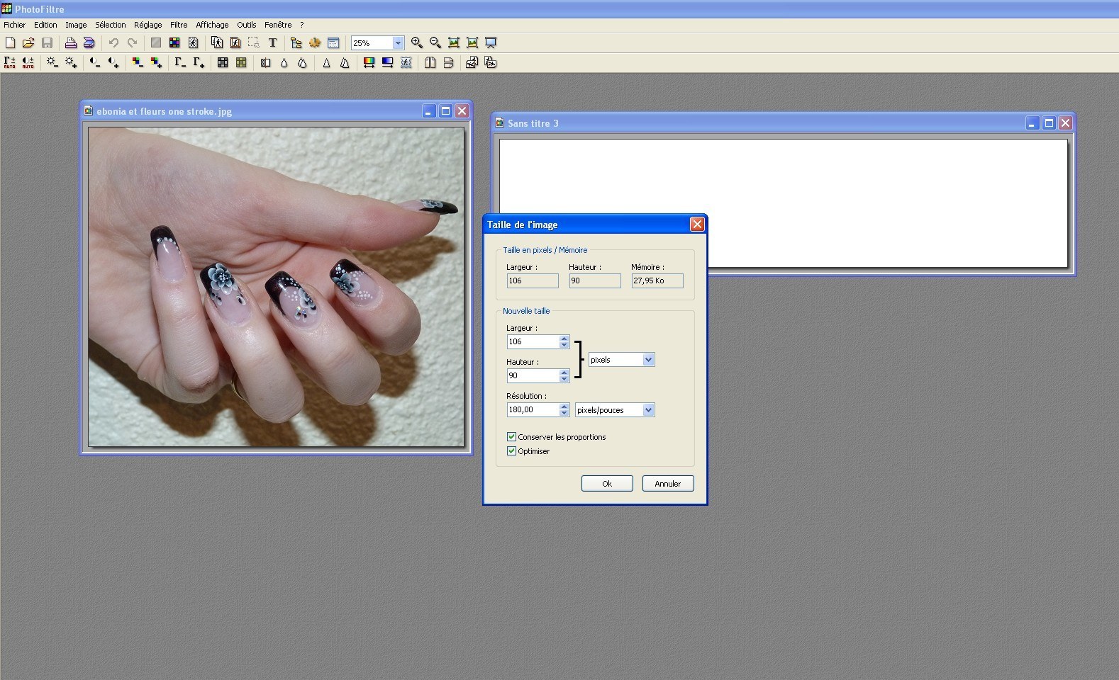 J'ai cherché une image sur internet (libre de droits), que j'ai ouverte dans photofiltre. Idem qu'au dessus, je réduis l'image à la taille voulue puis je copie et colle dans ma bannière (photo 7)