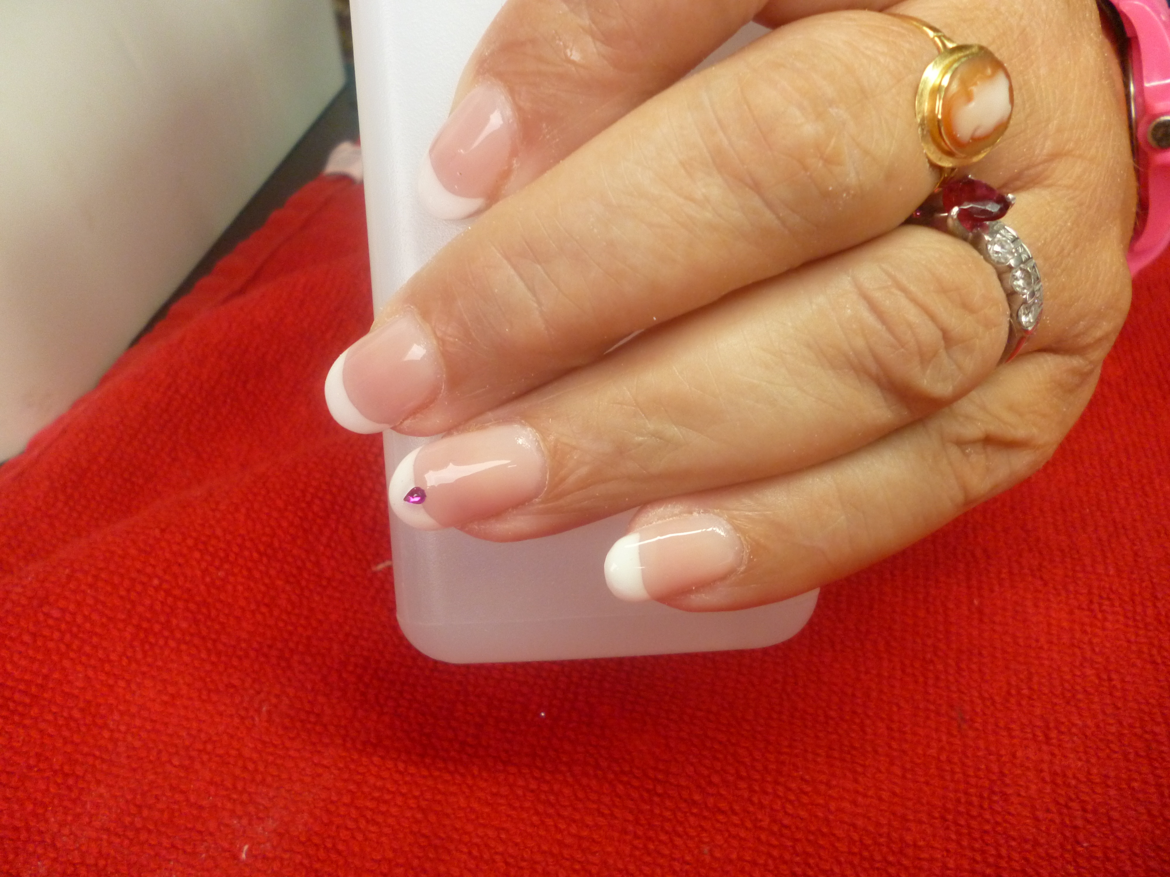 ta french doit être plus échancrée, elle est trop droite. il te faut dessiner un sourire en arc de cercle, cela donne plus de finesse à l'ongle. Fais aussi attention à tes galbes, tu dois les placer à hauteur des points de rupture naturels. Bonne continuation!