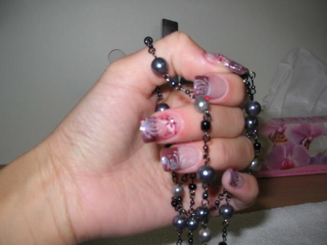 Re : une nouvelle pose pour ce soir ! un peu chargé a mon gout, mais tout de meme tres joli!!! c'est des tampons, le blanc?