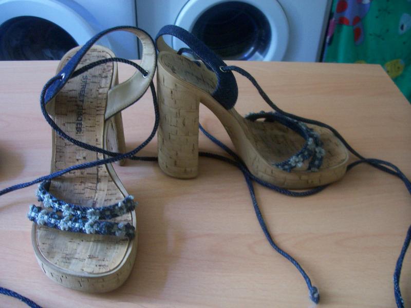 -1 paire de sandales talons hauts, petites lanières en jean sur le dessus du pieds et ]lacet en jean qui se noue autour de la cheville, très sexy. Pointure 36. Quasiment pas portées, le dessous est en parfait état, proche du neuf: 15 euros