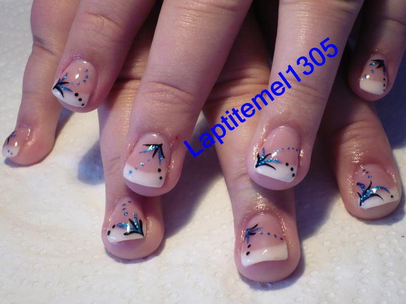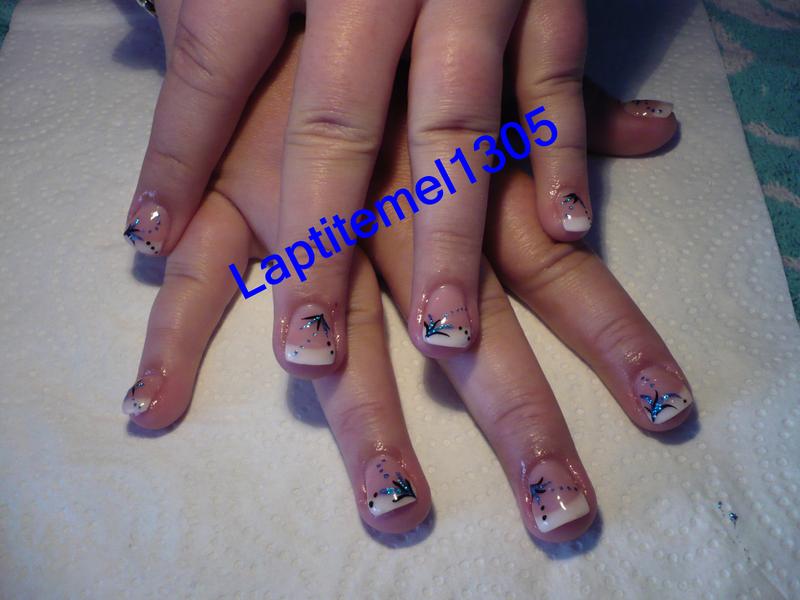 très jolie j'aime beaucoup !!!! pour les pattes de canards, pareille, j'ai leurs cousines chez moi, peut pas t'aider..., je suis comme toi, j'ai toujours peut d'arracher la french en limant de trop apres ...