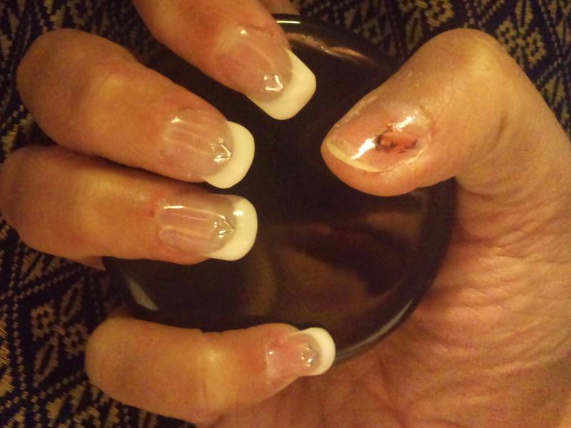 Un hématome c'est formé sous celiu ci , 3 semaine plus tard (l'hématome se déplaçant avec la pousse de l'ongle ) Je me suis posé capsules avec gel uv french . Là je me suis tout fait sauter pour tout refaire pour m'entraîner et ô stupeur la zone noir est partie avec la capsule je me retrouve avec un trou ds l'ongle assé sensible o touché mais sans plus si je touche pas celui ci . g'désinfecté et essuyé le sang qui avait séché dedans créans l'hématome. Mais je souhaiterais me reposer capsule et gel (je me dit ke sa le protégerais aussi de l'eau et tout le reste mais je ne voudrais pas agraver mon -bobo-