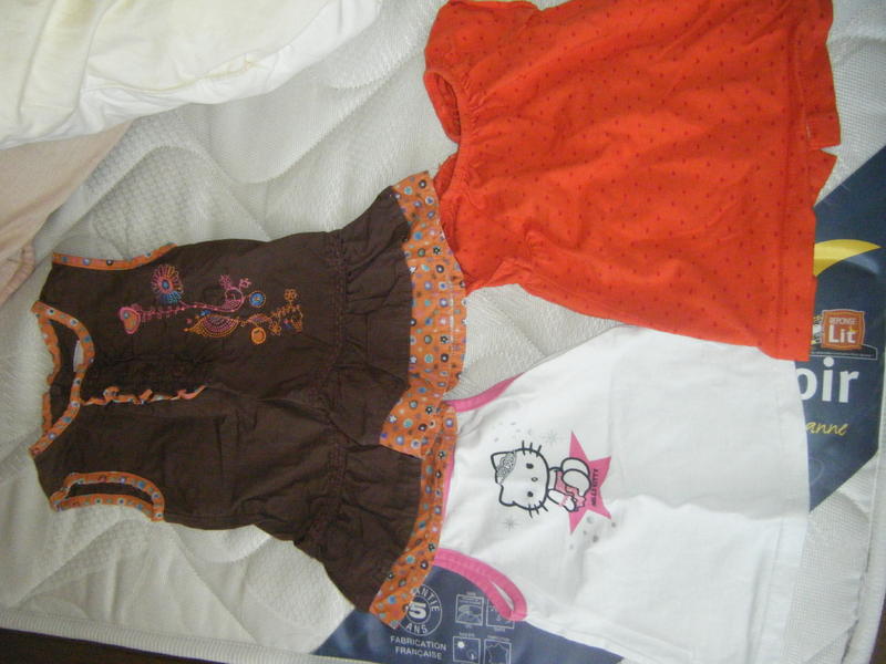 - photo 40 : 2tee shirt 6 mois + robe 6 mois : 6euros