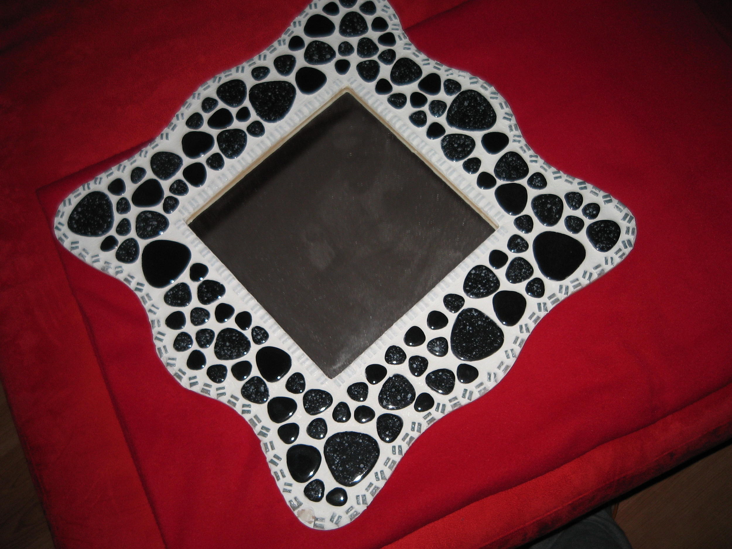 tout d'abord tu prends un super là en l'occurence un cadre miroir, tu colles tes galets avec de la colle spécial carrelage comme les carreleurs tu attends que ça seche et pour finir tu faits les joints aux ciment....