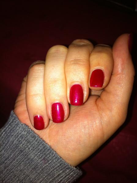 Protocole : cuti à repousser, coup de bloc blanc, base et enfin la couleur puis top. J'ai utilisé la base/topcoat onglerie.be pour la base et la finition. Retrait à l'acétone, en pré-limant légèrement.