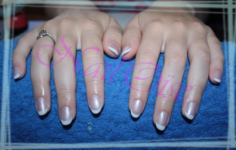 Voici la pose sur une amie du rose + french avec des vernis-gel semi-perma de chez Mellow NailArt. J'attends le retour pour la tenue.