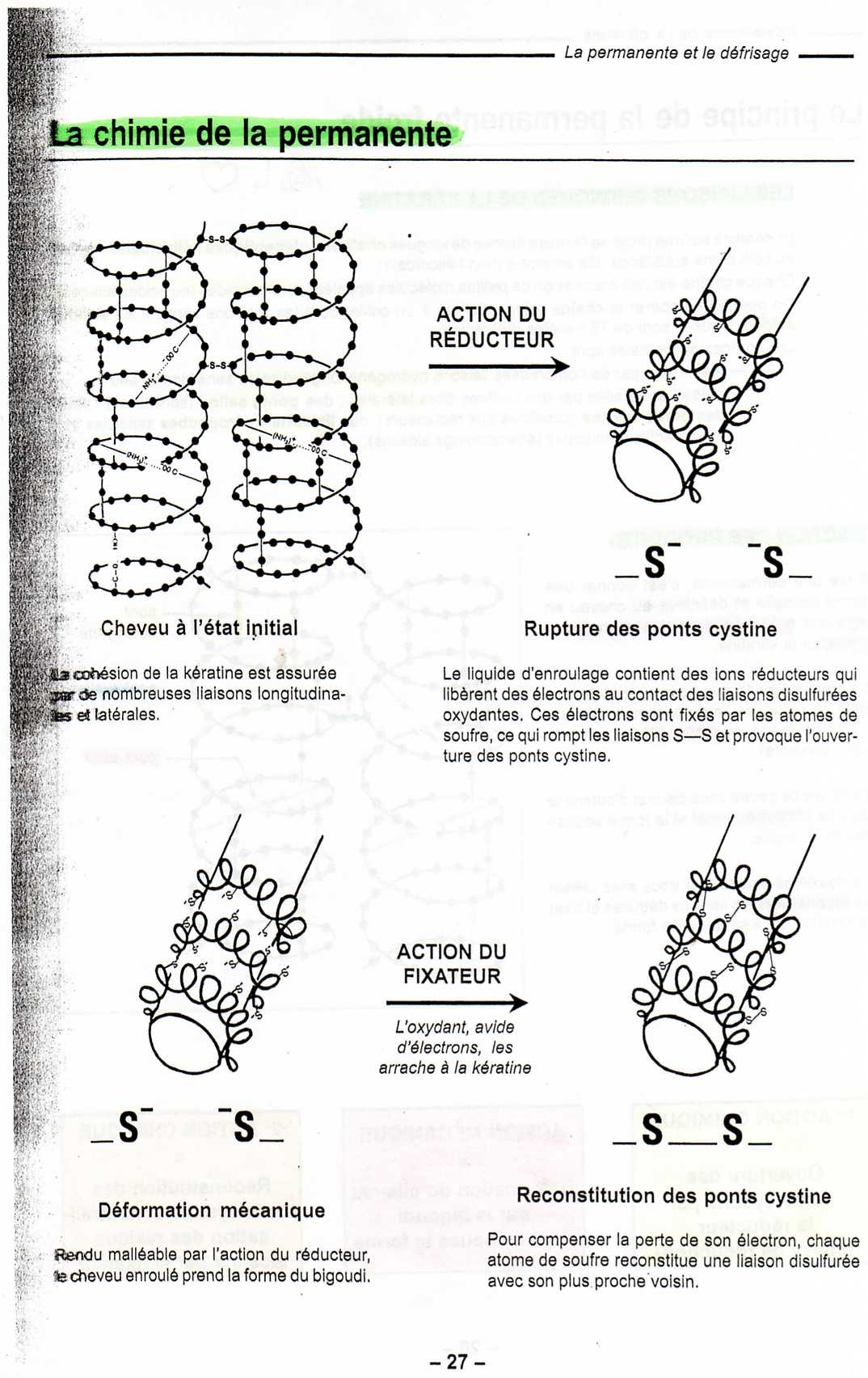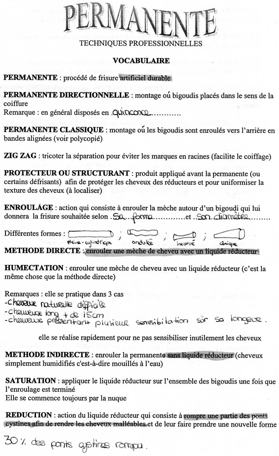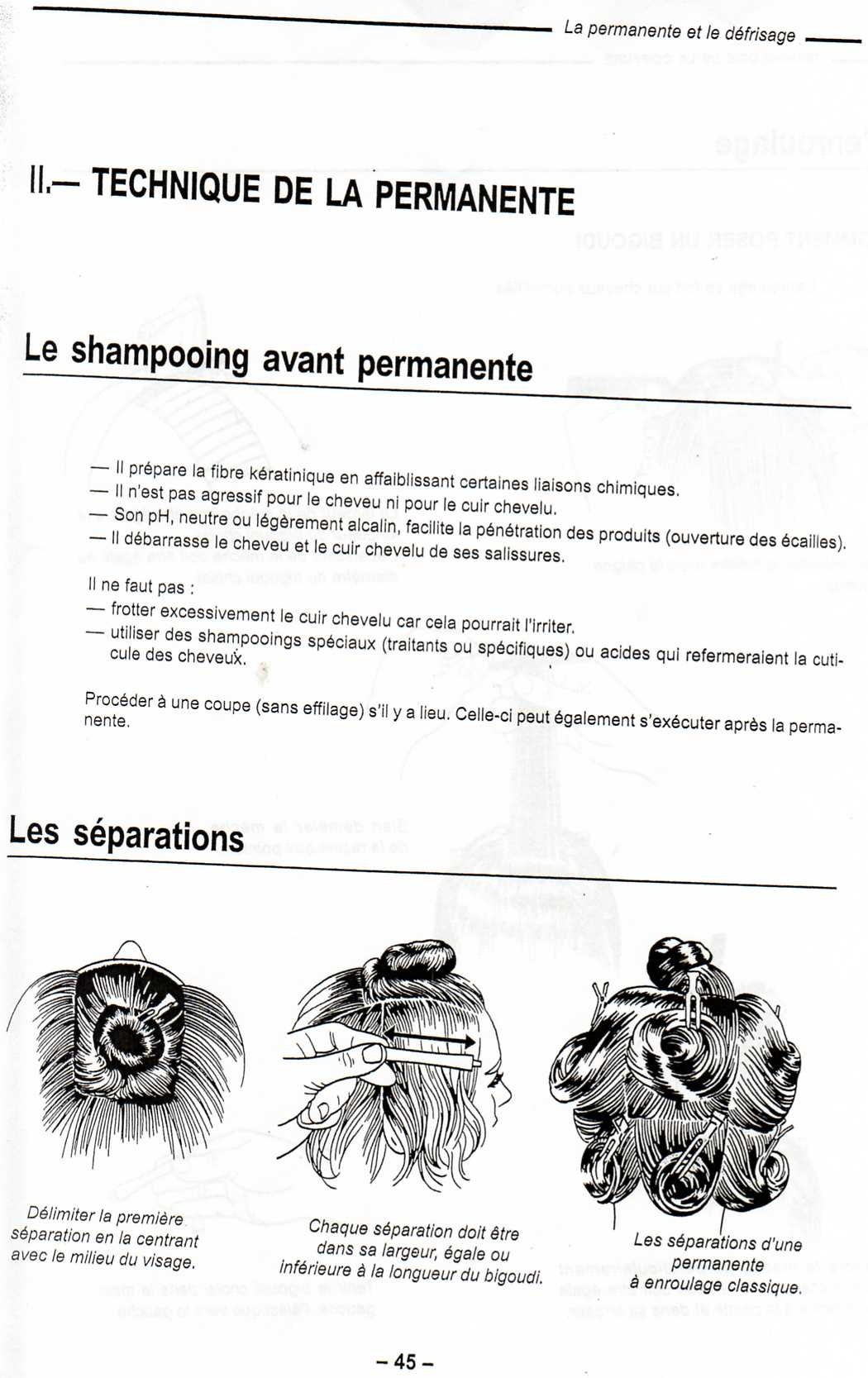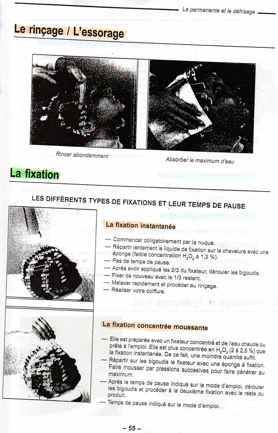 La permanent : c'est un renroulage de bigoudis avec l'application d'un produit réducteur afin de modifier la forme du cheveux pour que les boucle obtenues soit "permanente"