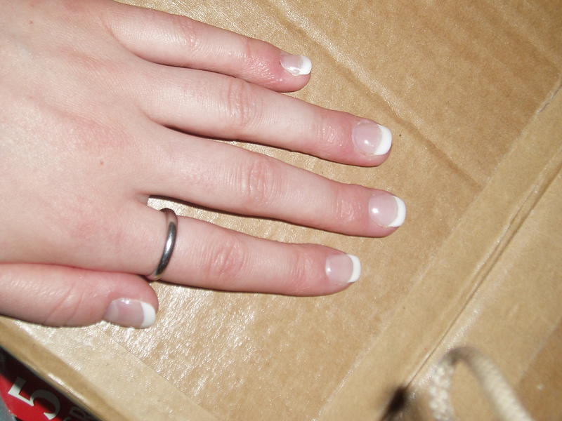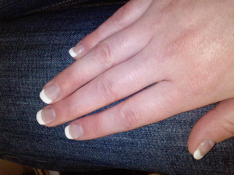 Tu as mis une capsule ou c'est un gainage ? Sinon le sourire n'est pas assez prononcé et la french n'est pas tout à fait pareil sur tout les doigts. Le bombé n'est pas assez prononcé non plus. Tu aurais peut-être du fare un ou deux doigts d'abord, montrer ensuite le résultat et te corriger parès. Saurais été moins diffile que refaire une main complète. Mais bon quand on est débutant c'est jamais simple. Bon courage et rassures toi avec de l'entrainement tu finiras par nous faire de super poses. Biz