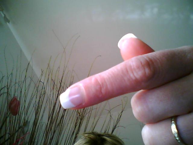 Ta french est trop grande, il te faut utiliser un gel couvrant pour rallonger ta plaque et ça manque de gel, ça risque de casser rapidement ^^