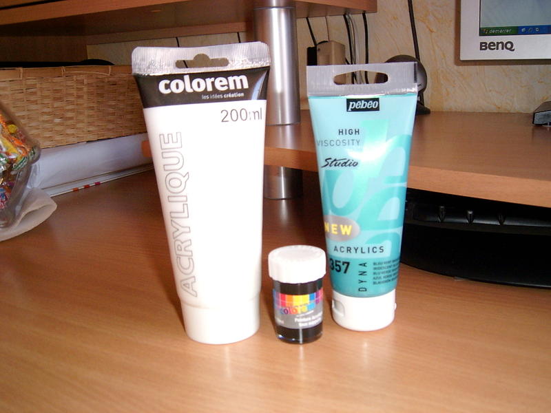 ) alors pour infos le petit pot noir acrylique je l'ai acheter a babou 0.99 cts et les aotre 3 euros donc pas cher du tout!! et j'ai pas finis d'en acheter c'est moi qui vous le dit!!bon j'arrete de parlé:audi: voici les photos(dommage que c'est un pe loingt mais si je me met plus pres c'est tout flou!