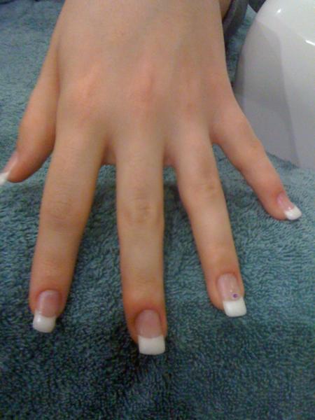 Je me lance à peine et après plusieurs essais sur moi même mes amies ont bien voulu me servit de cobaye !!! Merci les filles !!! La première est sur ongles naturels directement la deuxième et troisième avec capsules et la quatrième sans capsules avec chablons !! A mon avis un peu plus travailler le limage sur les coins et la french pas assez haute etc etc ! Toute critique est la bienvenue ...... Merci d' avance