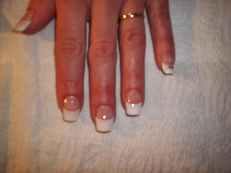 alors moi je trouve que la french est trop grande par rapport a la plaque tu nas pas respecté le 1/3 2/3 et attention sur le majeur la capsule semble trop grande il te faut limer les cotés avant de la poser. voilou mais continues !!