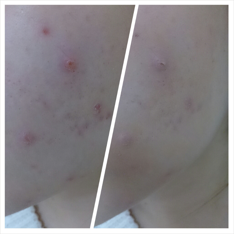 J'ai fais un avant aprés avec le dermablend (attention ames sensibles n'agrandissez pas la photo)