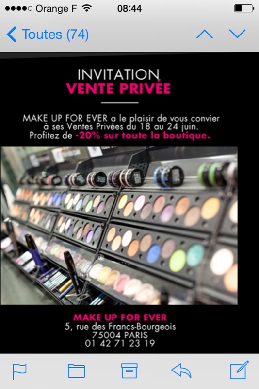 bah j'ai pas le souvenir lol mais surementmaximiaou a dit:MDRRRRRR! Mais tu dois être inscrite chez eux pour quelque chose, non? Moi je reçois la newsletter de MUFE USA parce que je suis chez eux et j'ai la carte artiste qui me donne droit à mes -20% mais elle ne marche que chez MUFE USA. Je l'ai faite quand j'y suis allée et ils n'ont fait aucun souci quand je leur ai prouvé que j'étais chanteuse. Mais ici… C'est une autre histoire.