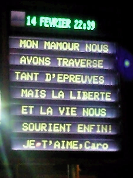 c'était mon cadeau a mon chéri sur les panneaux municipaux de ma ville