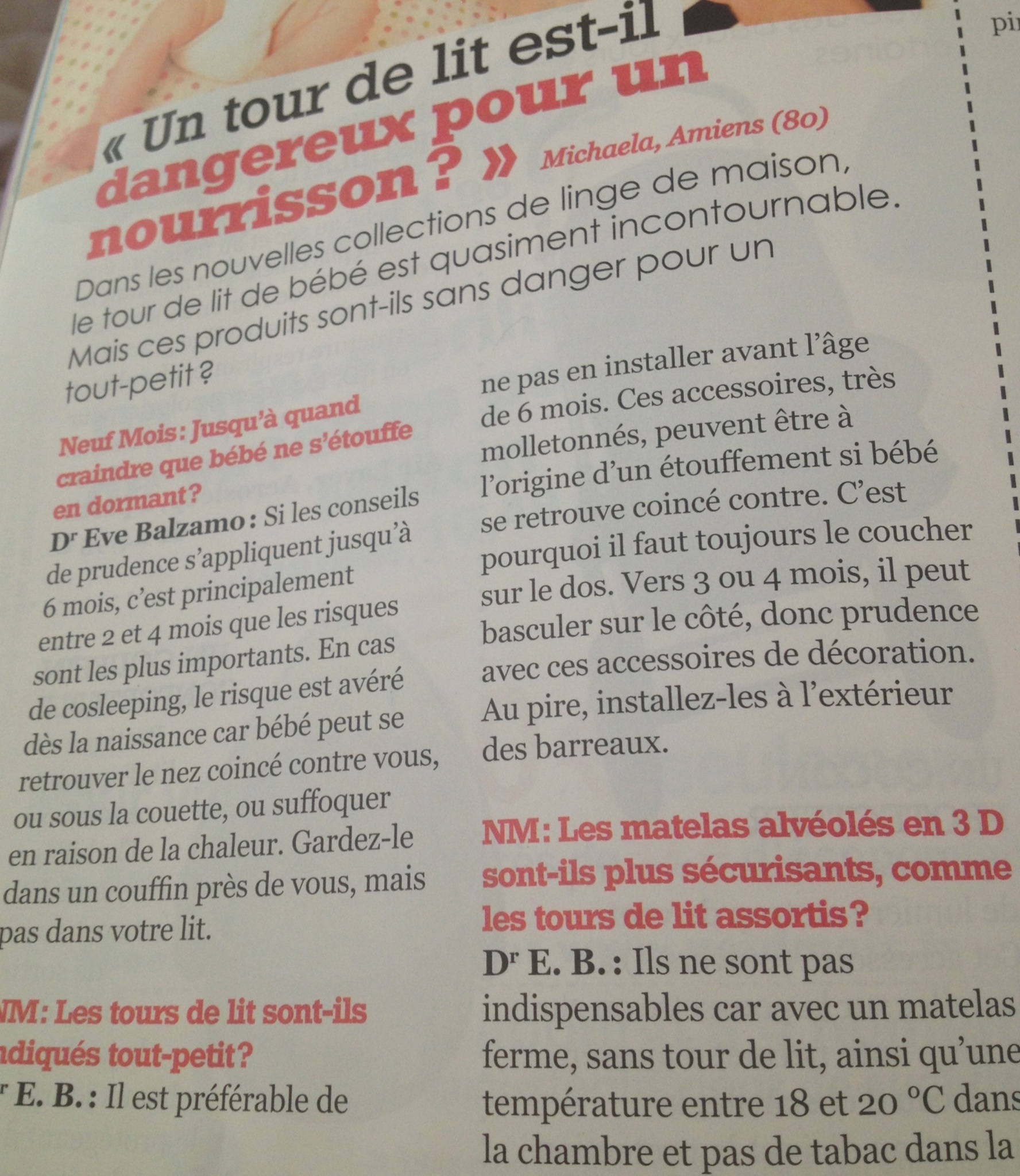 Petite pensée a vous en lisant mon magasine neuf mois il parlent des tour de lit