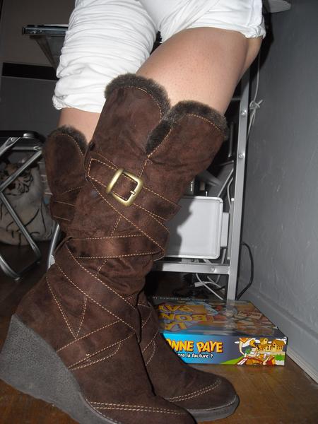 Bottines marron et mes botte Doudou ! Bon elles rendent pas très bien sur la photo j'avoue ! En vrai c'est mieux ! En plus avec un jean blanc pas top ! :laughing1: