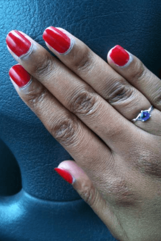 J'adore le vernis rouge moi je trouve ca super beau ! Tu pourrais mettre la page de ta derniere photo pour qu on voit l evolution de la pousse? merci