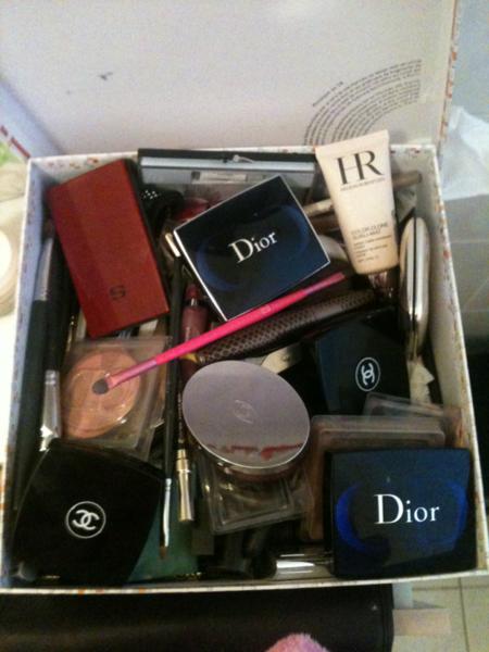 Moi en ce moment c est gros bordel tout éparpillé ds une grosse boite Hermès... Pas top et les pinceaux à gauche à droite lol suis pas un super exemple :s