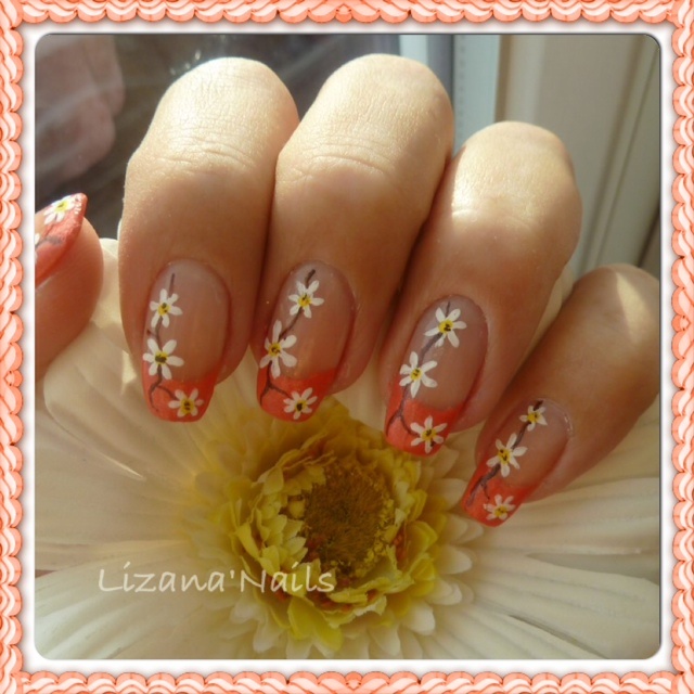J'ai essayé de penser à un nail art que je pourrais faire sur un vernis qui prendrait la totalité de l'ongle (pour m'entrainer à mieux poser mon vernis) mais j'ai pas eu d'idée ... du coup je suis partie sur une french orangée