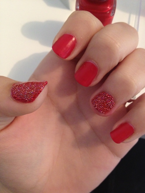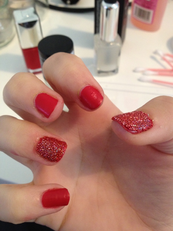 Oui fait comme ça parce que s'il y a du vernis sur l'autre après c'est la merde. : /. Bon moi toujours mon caviar manucure rouge. ^^