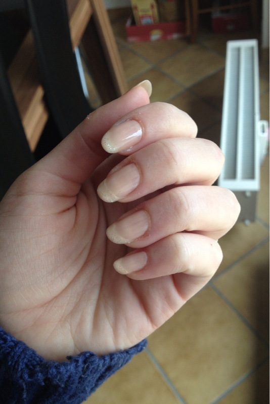 Pour moi ajd c'est une couleur plus discrete ( pas aussi bien que toi Danahora ^^) du nude avec paillette en haut style french ( de revoir les paillettes ça m'a donné envie lol )