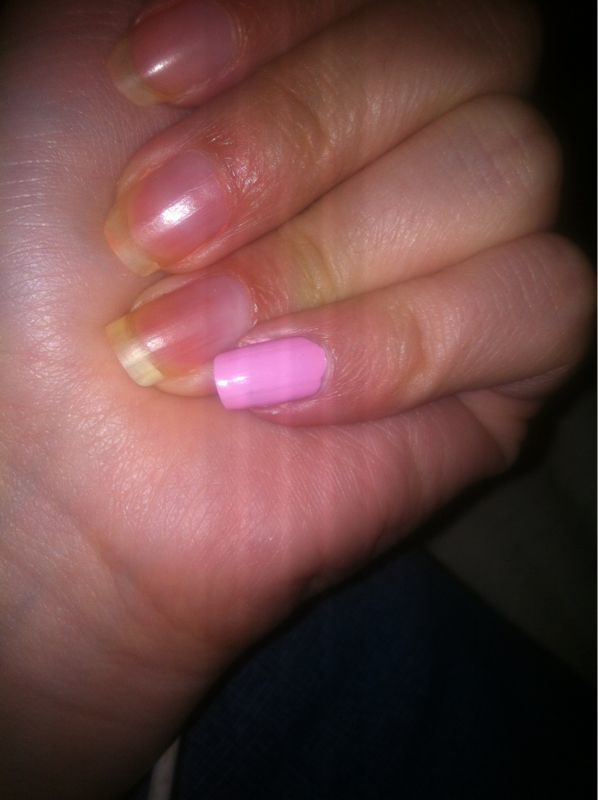 (faite pas gaffe a mes ongles lol je met jamais de base et du coup il se colore lol)