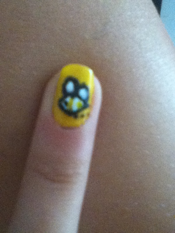 Cc je me suis fais mon nail art " abeille " mais perso j'aime pas sur moi sa fait tress brouillon , j'espère que vous me voulez pas trop mais j'ai une excuse mon premier nail art au pinceau et le noir c'est du craqueler ... Galère galère mais en attendant j'ai eu d'autre cliente : ma petite couzine de 3 ans ( :) ) et ma tâta Et ma Mamie