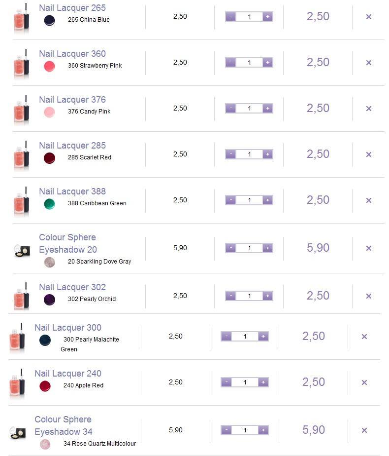 j'ai fait une commande de 8 couleurs chez Kiko + 2 eyeshadow pour 31,80 ça va !!!!