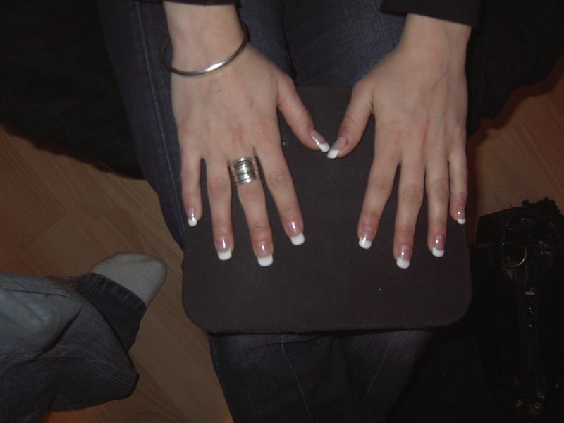 ta pose est soignée. Côté défauts, la french est un peu trop grande mais comme tu n'as pas de couvrant, tu n'as pas trop le choix. Les parallèles ne sont pas bien droits, du coup ça s'évase un peu au niveau de la french.