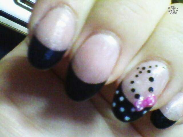 Voilà, je mets d'autres photos de poses plus anciennes (rose et amande avec french très fine noire, le noir a bavé à l'époque) et plus récentes même si les photos ne sont pas vraiment de très bonne qualité. La plus récente est celle de noël.