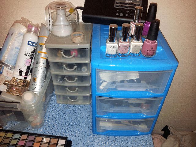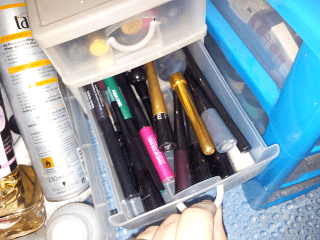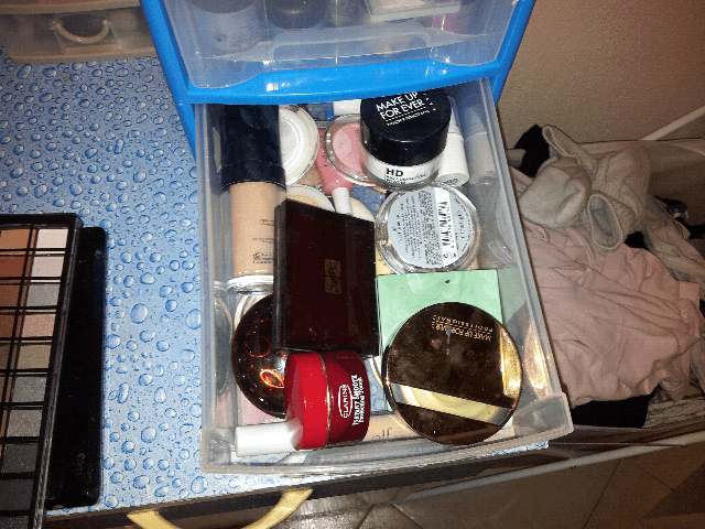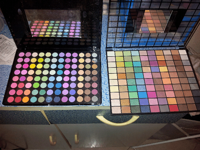 Bah du coup je met la mienne ; J'ai mis ce que j'utilise le plus ,mais il manque ma palette bad girl et mes pinceaux qui sont en train de sécher !