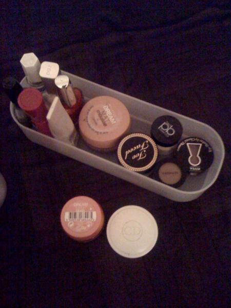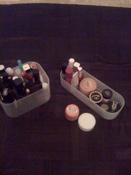 Moi je n'ai pas de place pour ranger mon make up alors je fourre tout dans une immense trousse de toilette lol