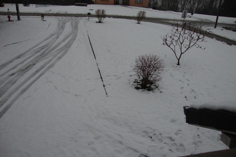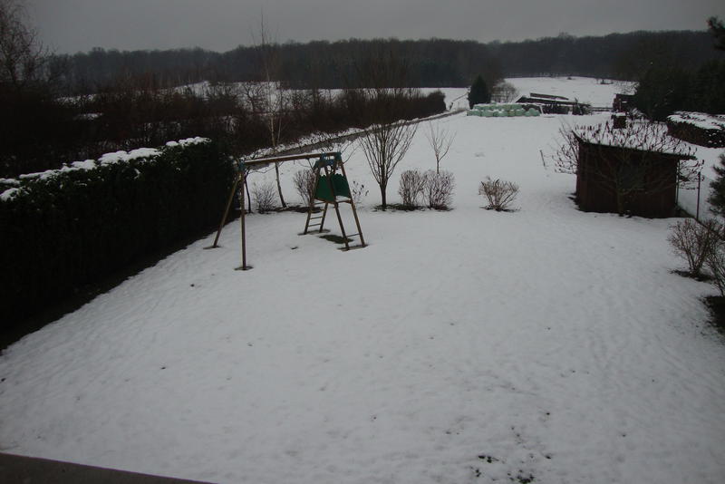 Chez nous il y a aussi de la neige depuis 1 semaine. Hier il a neigé toute la journée sans arrêt mais aujourd'hui il pleuviote donc ça fond... Je vous met tout de même 2 photos... C'est un peu plus triste que chez toi Dragonfly :-)