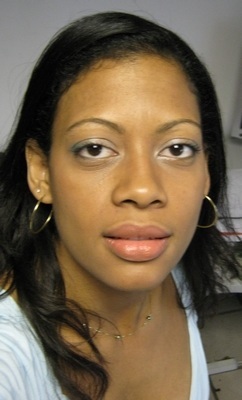 et make up léger, poudre bronzante, blush, eye liner et mascara.