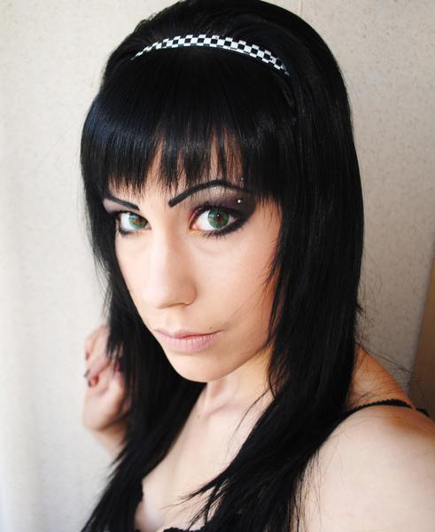 Make'up or, bordeaux, et noir pour faire ressortir la couleur verte des lentilles^^ c'est pas les plus jolies, c'est sûr mais j'allais pas en acheter des pire chère pour la première fois =)