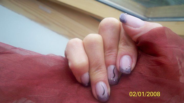 je savais que t'allais dire ca laura lol, impossible de travailler le gel en remontant pour le sourire, le gel été trop liquide ! trop chaud, ca fesait très moche puisque faut l'appliquer en couche épaisse pour voir les paillettes lol puis ma cliente a préféré un sourire moins prononcé .....
