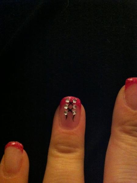 1/ J'ai mélangé des paillettes avec du gel de construction et j'ai dessiné la french.