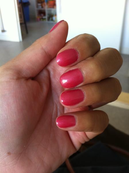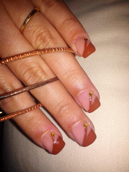Je trouve que la plaque est très rose (gel mask sans doute) et qu'avec le rouge de la pose, ça coince un peu... Question de goût... Puis or et rouge, ce n'est pas ma tasse de thé non plus... Décidément, sur le plan couleurs, nous ne sommes pas sur la même longueur d'onde... ;-)Voici ma 5eme pose que je viens de terminer, besoin de vos critiques !