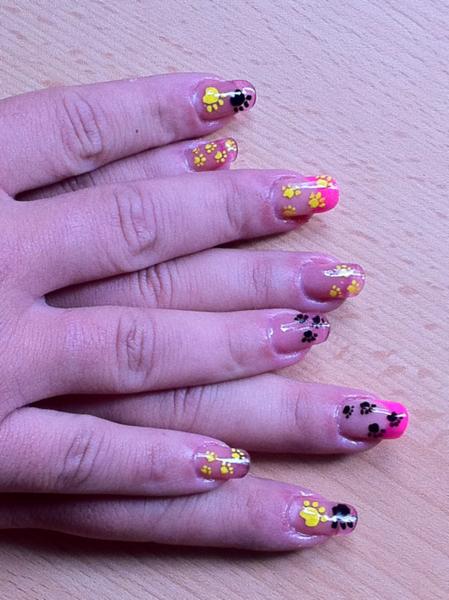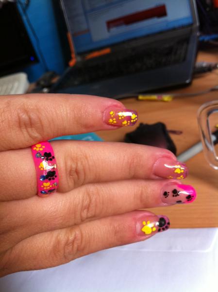 Donc les vitrails en gel et les roses en résine. Mes 4 premiers ongles humains en résine en fait.
